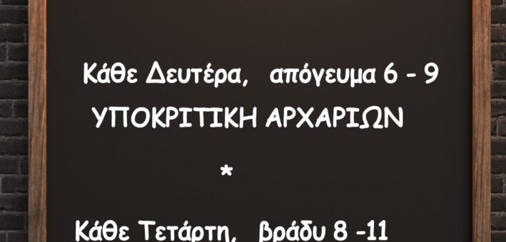 Κάθε Τρίτη 9.00 μ.μ. – 11.00 μ.μ.